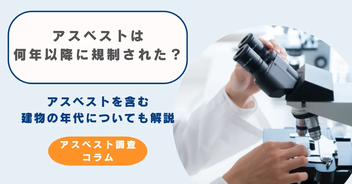 アスベストの使用は、1975年以降から段階的に規制され、2006年以降は原則禁止されています。2006年9月1日以降の建築物であれば、アスベストが使用されていませんが、築年数のみでアスベストの有無を判断することは難しいのが実情です。